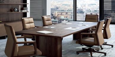 We design adaptable conference rooms that evolve with modern business needs, from traditional boardroom meetings to video calls, with quality tables at competitive prices.